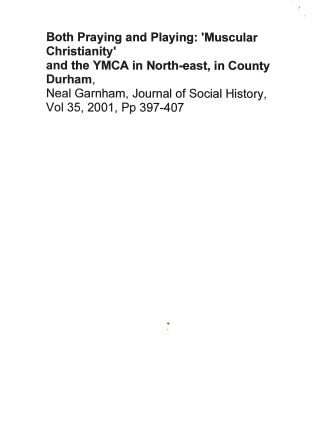 Both Praying and Playing: 'Muscular Christianity' and the YMCA in North-east, in County Durham, Neal Garnham, Journal of Social History, Vol 35, 2001, Pp 397-407