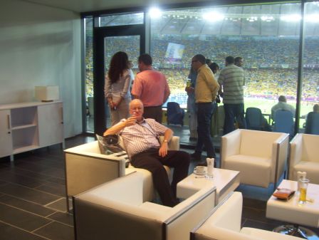 Relaxing in the executive lounge before Ukraine Sweden