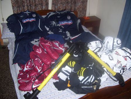 In the end Stuart was able to take the following kit which was distributed among three football projects:
